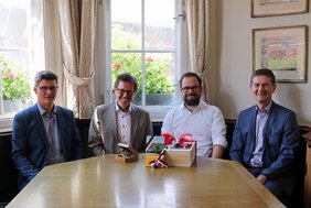 Oberbürgermeister Jan Rothenbacher verabschiedet sich vom langjährigen Schulleiter der Memminger Fach- und Berufsoberschule (FOS/BOS) Karl Albrecht. Das Stadtoberhaupt bedankte sich herzlich für dessen verlässliches Wirken und wünschte ihm alles Gute für seinen bevorstehenden Ruhestand. Oberstudiendirektor Karl Albrecht war über 23 Jahre an der Memminger Fachoberschule als Lehrer für Englisch und Metalltechnik tätig und leitete sie seit 2018. In den vielen Jahren war er ein geschätzter Team-Player in der Schulleitung, fairer Ansprechpartner für alle Schülerinnen und Schüler sowie geschätzter Kollege, so die einhellige Meinung seiner Mitarbeitenden.