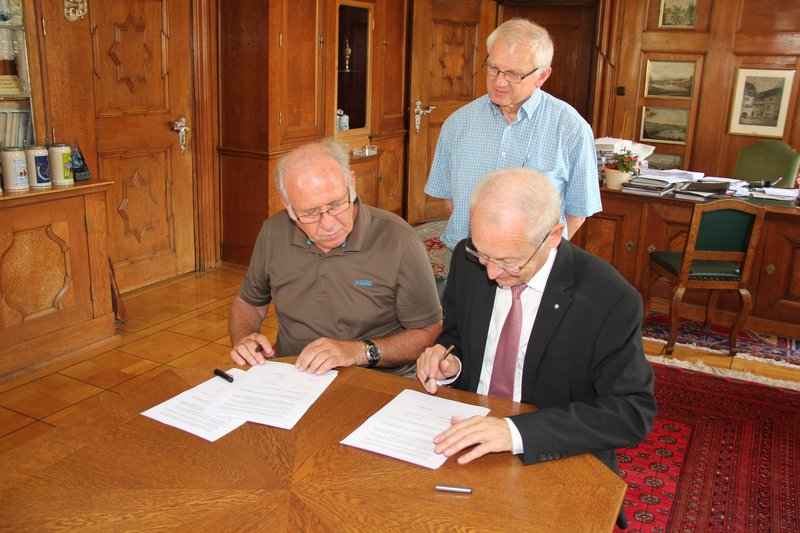 Hierzu fand nun am 16. August 2016 die Unterzeichnung des Koopera- tionsvertrages zwischen dem Oberbürgermeister Dr. Ivo Holzinger von der Stadt Memmingen und dem Ersten Bürgermeister Alfred Grözinger von der Gemeinde Fellheim, statt.