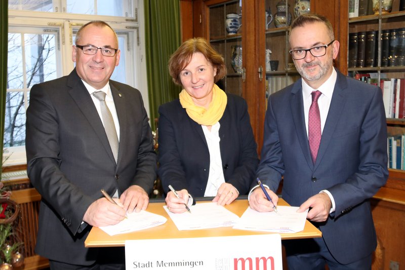 Um junge Menschen bei ihrem Übergang von der Schule ins Berufsleben zu unterstützen, gibt es in Zukunft die Jugendberufsagentur. Das ist keine neue Behörde, sondern eine gesetzlich verankerte Vereinbarung für eine intensive und strukturierte Zusammenarbeit der beteiligten Behörden. Im Memminger Rathaus wurde diese Vereinbarung zur Jugendberufsagentur nun von Oberbürgermeister Manfred Schilder, Maria Amtmann, Leiterin der Agentur für Arbeit Kempten-Memmingen und Norbert Schreff, Geschäftsführer des Jobcenters Memmingen, unterzeichnet. „Gemeinsam sind uns junge Menschen an der Schnittstelle von Schule und Beruf anvertraut und gemeinsam nehmen wir unsere Verantwortung wahr“, erklärte Oberbürgermeister Schilder. Er sprach von einer stärkeren Bündelung, einer engen Abstimmung und Verzahnung der öffentlichen Träger zugunsten einer guten Zukunft vor allem von benachteiligten jungen Menschen.