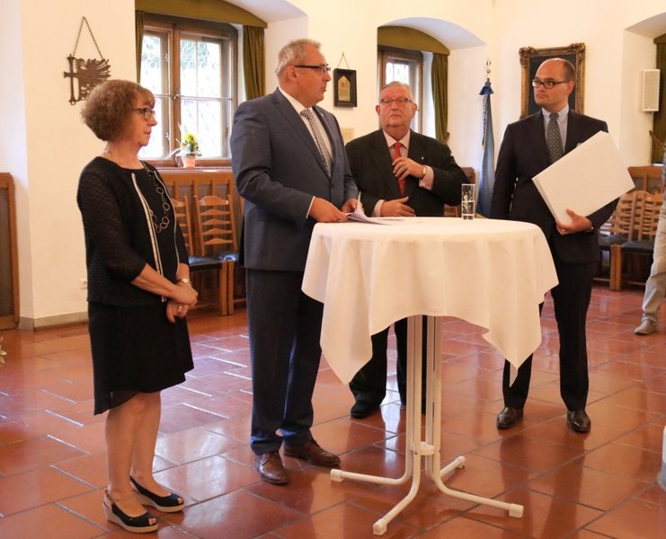 Verteilt auf verschiedene Projekte spendete das Krematorium Memmingen insgesamt die stattliche Summe von 35.000 Euro. In Anwesenheit von Oberbürgermeister Manfred Schilder, Bürgermeisterin Margareta Böckh und zahlreichen Ehrengästen überreichten Henry Keizer, Vorstandsvorsitzender von „die Facultatieve Gruppe“ und Stefan van Dorsser, Betriebsleiter des Krematoriums Memmingen sieben Schecks. Bedacht wurden diesmal der Deutsche Alpenverein Sektion Memmingen, die Stadtkapelle Memmingen, der Historische Verein Memmingen, der Bienenzuchtverein Memmingen, die Kirchengemeinde St. Ulrich Amendingen mit zwei Projekten und die Johanniter-Unfall-Hilfe Regionalverband Allgäu.