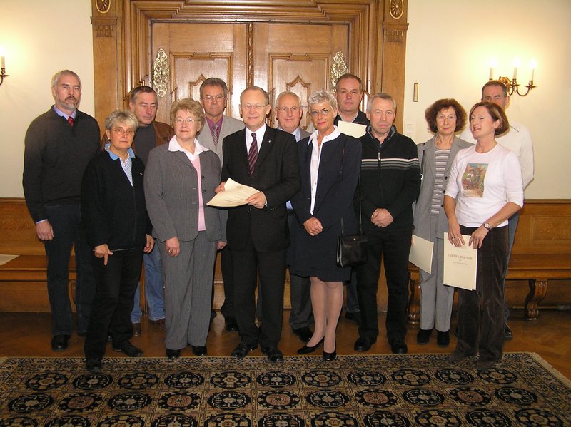 Im Rahmen einer kleinen Feierstunde zeichnete Oberbürgermeister Dr. Ivo Holzinger jetzt zahlreiche langjährige Mitarbeiterinnen und Mitarbeiter aus. Der Stadtchef lobte dabei die Treue zur Stadtverwaltung und für das bewiesene Engagement, dass die Frauen und Männer in 25 bzw. in 40 Jahren unter Beweis gestellt hatten. Er überreichte den Hochgelobten eine Dankesurkunde sowie kleine Anerkennungsgeschenke. Unsere Aufnahme zeigt die Ausgezeichneten zusammen mit OB Dr. Holzinger.