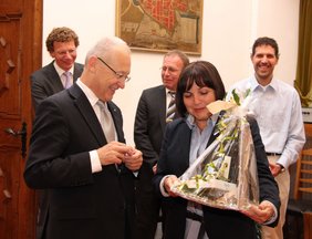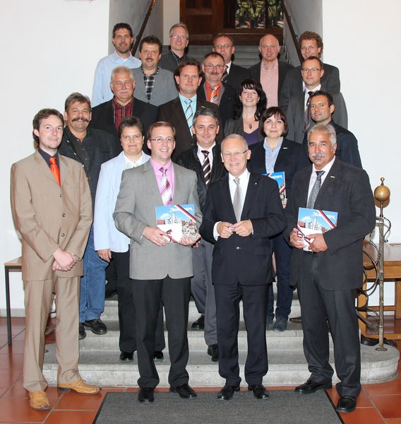 Überraschungsgast beim Empfang im Rathaus war Edda Propst, Vorsitzende des VLK Sachsen-Anhalt, aus der Memminger Partnerstadt Lutherstadt Eisleben. Sie überreichte dem Rathauschef mit den besten Grüßen der Oberbürgermeisterin Jutta Fischer ein Gastgeschenk aus Martin Luthers Heimatstadt.