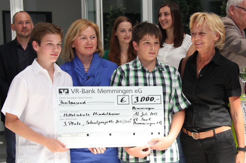 Die VR-Bank Memmingen hat auch im Schuljahr 2012/2013 wieder Projektarbeiten in Schulen unterstützt und stellte zum dritten Mal 20.000 Euro Spendengelder aus den Zweckerträgen des Gewinnsparens zur Verfügung. Auf den 1. Platz mit einem Preisgeld in Höhe von 5.000 Euro schaffte es die Lindenschule Memmingen mit dem Projekt "Bau eines Hochbeets".