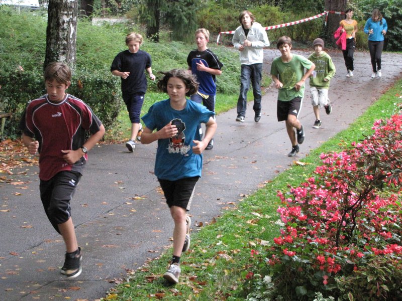 Lob gelte vor allem den jüngsten Schülerinnen und Schülern, die am eifrigsten ans Werk gegangen seien. „Die Klasse 6a hat am besten abgeschnitten und alleine 300 Runden geschafft. Das sind quasi zehn Runden pro Person!“, lobte Hess. Dafür gebe es Sachpreise und sie dürften die heutige Delegation stellen. Manuel Petermichl und Gero Wölfle hätten in einer halben Stunde jeweils sieben Kilometer geschafft.