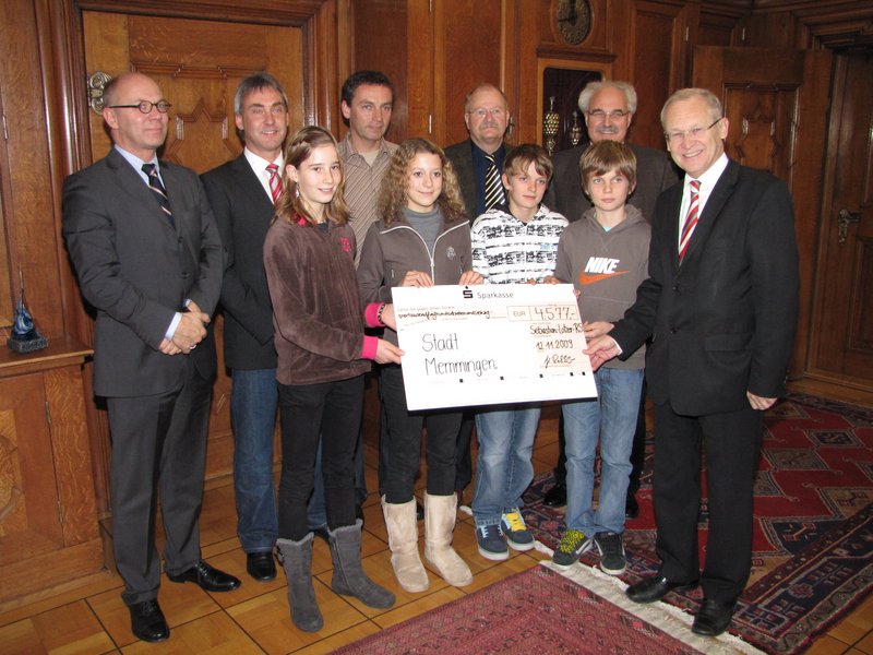 Am 9. Oktober sammelten im Zuge des Sponsorenlaufes „Lotzer läuft“ an der Sebastian-Lotzer-Realschule Schüler Geld für die vom ersten Preisträger des „Memminger Freiheitspreises 1525“ Dr. Gyula Horn initiierte „Stiftung für eine menschliche Welt“. Knapp 700 Schülerinnen und Schüler liefen in einer halben Stunde stolze 4 988 Runden mit einer Gesamtlaufleistung von über 2 700 Kilometern – das ist eine Distanz von durchschnittlich knapp vier Kilometern pro Läufer! Oberbürgermeister Dr. Ivo Holzinger, der den Scheck in Empfang nahm, zeigte sich sichtlich beeindruckt von der erbrachten Leistung.