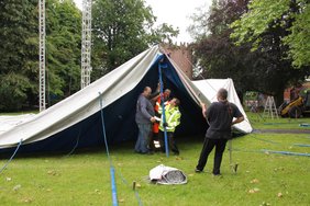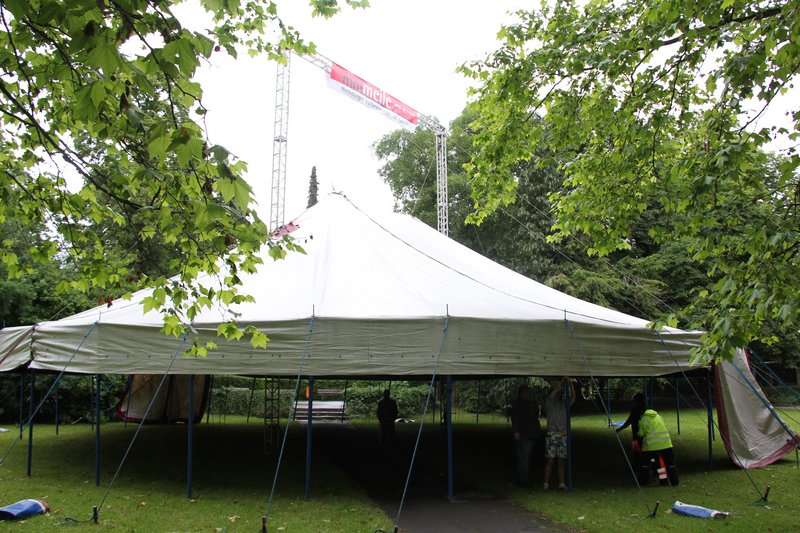 In den kommenden Tagen werden dort die Bühne aufgebaut, Licht- und Tonanlagen installiert und die Zuschauertribünen aufgestellt. Überall wird fleißig gewerkelt und geschraubt, damit am Donnerstag, 25. Juni, um 19:30 Uhr das Festival von Oberbürgermeister Dr. Ivo Holzinger unter der blauen Sternenkuppel des Zeltes eröffnet werden kann.