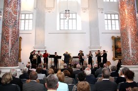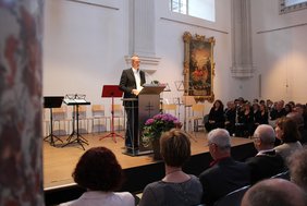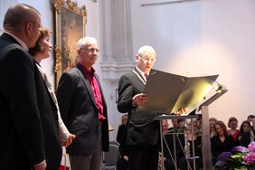 Was der gebürtige Holländer, der 1994 nach Deutschland kam, alles für die Stadt und das kulturelle Leben in der Stadt getan hat, zeichnet der Vorsitzende der Memminger Kapelle Christof Heuß in seiner interessanten und amüsanten Laudatio nach. Heuß erzählt von den anfangs kritisch beäugten Veränderungen, die Ekkelboom als neuer Stadtkapellmeister vor zwei Jahrzehnten einführte: "Aber der musikalische Erfolg gab ihm Recht", sagt der Laudator über den gefragten Dozenten, Wertungsrichter und Dirigentenausbilder Ekkelboom, der es sich auch bei seiner eigenen Preisverleihung nicht nehmen lässt, die musikalischen Arrangement, die den Abend zu einem kulturellen Highlight machen, selbst zu dirigieren.