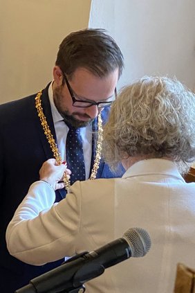 Vor der Stadtratssitzung fand anlässlich der Amtseinführung eine ökumenische Andacht in der Martinskirche statt, geleitet von Dekan Christoph Schieder und Pater Joshy Palakunnel, Leiter der katholischen Pfarreiengemeinschaft Memmingen. „Suchet der Stadt Bestes“ zitierte Dekan Schieder dabei den Propheten Jeremia. Vieles werde von Gesetzen, Verordnungen und Satzungen geregelt. „Doch wie wir in unserer Stadt zusammenleben wird geprägt von den Werten, die uns wichtig sind, und wird bestimmt vom Geist, der im Rathaus und in den Straßen weht“, betonte der Dekan. Memmingen habe sich im Motto der Stadt der Freiheitsrechte „Jede:r darf sein“ auf die Fahne geschrieben. „Da weht der Geist der Freiheit, der andere achtet und respektiert“, gab Dekan Schieder den Gästen der Andacht mit zur Amtseinführung im Rathaus.