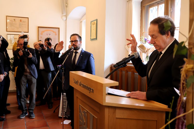 In einer festlichen Sondersitzung des Memminger Stadtrats wurde Jan Rothenbacher (SPD) in sein Amt als Oberbürgermeister der Stadt Memmingen eingeführt. „Mit großem Respekt, aber auch mit Freude trete ich dieses Amt in unserer traditions- und geschichtsreichen Stadt Memmingen an“, erklärte Oberbürgermeister Jan Rothenbacher in seiner Antrittsrede im Rathaus. Den feierlichen Amtseid nahm ihm Bürgermeister Dr. Hans-Martin Steiger ab. Bürgermeisterin Margareta Böckh legte dem 30-jährigen Oberbürgermeister die Amtskette um.