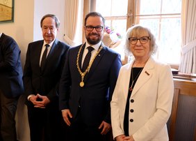 Der monatelange Wahlkampf sei nun vorbei, erklärte Bürgermeisterin Margareta Böckh. „Ab heute sind Sie Oberbürgermeister für alle Bürgerinnen und Bürger der Stadt“, bekräftigte sie. Dabei gelte es die vielen verschiedenen Interessen auszugleichen. „Die Stadt Memmingen ist für viele Bürgerinnen und Bürger Heimat. Hier leben und arbeiten sie. Wir im Memminger Rathaus sind auch dafür verantwortlich, dass sich hier gut leben und arbeiten lässt. In diesem Sinne werden wir alle gemeinsam – das Bürgermeisteramt, die Stadtverwaltung, der Stadtrat an der Seite des neuen Oberbürgermeisters Verantwortung für unsere Stadt engagiert und zukunftsorientiert wahrnehmen“, betonte Bürgermeisterin Böckh und wünschte Oberbürgermeister Jan Rothenbacher für sein neues Amt viel Kraft und das notwendige Quäntchen Glück.