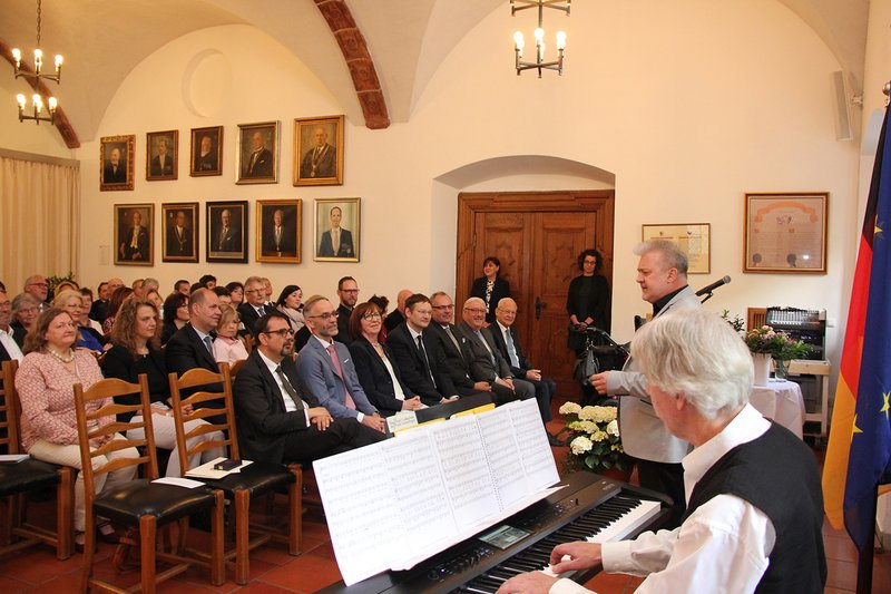 Im Anschluss an die Aushändigung des Bundesverdienstkreuzes trug sich Staatsminister Dr. Hans Reichhart ins Goldene Buch ein.