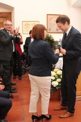 „Vielmehr Mitbürgerinnen und Mitbürger sollten sich auf den Weg machen, den Sie bereits beschreiten und sich für das Wohlbefinden unserer Gesellschaft einsetzen“, merkte Dr. Reichhart nach der Aushändigung der Urkunde und des Bundesverdienstkreuzes an. „Sie dürfen diese Ehrung aber nicht als Abschluss ihrer Tätigkeit betrachten, sondern als Bitte, so weiterzumachen“, äußerte der Staatsminister. Schließlich diene diese Verleihung sinnbildlich für alle und solle für alle den Impuls geben, sich selber dauerhaft ehrenamtlich einzusetzen. Besonders ihr jahrzehntelanges Ehrenamt beim Kinderschutzbund und auch in der kommunalen Politik hob er lobend hervor.