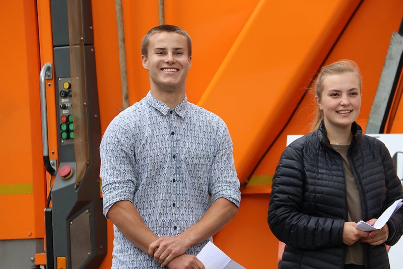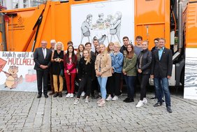 Dietmar Hörberg, Leiter des Amts für technischen Umweltschutz, bedankte sich bei den Schülerinnen und Schülern für ihre Arbeiten. Die zehn Aufsteller werden vom Amt für technischen Umweltschutz abwechselnd an verschiedenen Wertstoffinseln im Stadtgebiet platziert und auch für den Container soll Platz gefunden werden. Zusammen mit den Plakaten des Amts, die seit einiger Zeit auf die Verschmutzungen neben den Wertstoffcontainern aufmerksam machen, soll die positive Entwicklung mit dieser Kampagne weiter aufrecht erhalten werden. „Wir „ent-sorgen“ den Müll in dieser Stadt und führen ihn so gut wie möglich dem Recycling zu, damit er in anderen Ländern keine „Sorgen“ bereitet“, formulierte es Hörberg. Barbara Müller-Pollack, die begleitende Lehrkraft des Projekts, habe im Vorfeld gesagt, Abfallwirtschaft sei sexy. In diesem Sinne bedanke er sich für die sexy Arbeiten, die er nun für das Amt zur Verfügung habe.