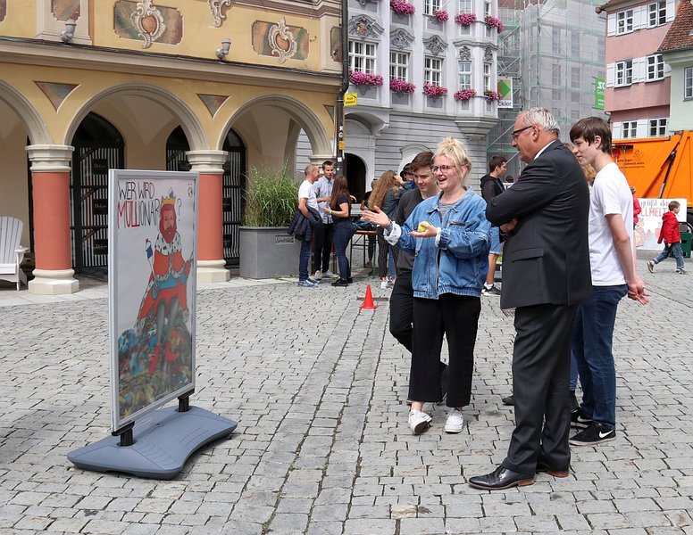 Ironisch und witzig, aber auch kritisch sollten die Motive sein, die sich die 14 Schülerinnen und Schüler des P-Seminars für ihre Kampagne haben einfallen lassen. Man wolle in Sachen Umweltverschmutzung schließlich nicht nur mit dem erhobenen Zeigefinger belehren, wie Oberbürgermeister Manfred Schilder hervorhob, sondern eben mit Mitteln der Kunst eine Sensibilisierung der Bürgerinnen und Bürger erreichen. „Wie gehen wir mit unserem Müll um? Wie können wir Müll vermeiden?“, das sind die Fragen, die sich die Betrachter stellen sollen.