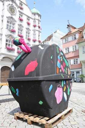 Nach der Begrüßung durch das Stadtoberhaupt erläuterten Sarah Brock und Jonas Eisner die verschiedenen Schritte der Kampagne. Nicht nur die Motive mussten angefertigt und ausgewählt werden. Auch wurde für die Kampagne ein extra Logo und ein Schriftzug erstellt sowie neben den Plakaten für die Wertstoffinseln und zwei Müllfahrzeuge ein Wertstoffcontainer gestaltet. Dieser stellt ein schwarzes Loch dar, das den Müll der ganzen Erde von ihr wegtransportieren soll, so die Erklärung. Amelie Gugel und Anna-Maria Nattenmiller erörterten außerdem ihre Vorüberlegungen zu ihren beiden Kunstwerken, die in den nächsten Monaten auf zwei der Memminger Müllfahrzeuge durch die Maustadt fahren werden. Beim einen ist es das Anliegen, dass das Thema Müll „nicht unter den Teppich gekehrt werde“. Beim anderen, dass der arglose Umgang mit unseren Abfällen nicht dazu führt, dass der Müll nicht wieder auf unseren Tellern landet. Brock und Eisner bedankten sich herzlich bei der Stadt und dem Amt für technischen Umweltschutz für die gute Zusammenarbeit und die Finanzierung der Plakate für die Aktion.