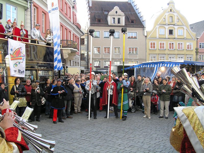 Memmingen, Marktplatz, herrlicher Sonnenschein. Stimmungsmusik ertönt aus Lautsprechern, Krapfen werden verkauft, Glühwein wird ausgeschenkt. Es ist der 11.11. und die Narren Memmingens und Umgebung sind in den Startlöchern auf dem Weg zum Markplatz.