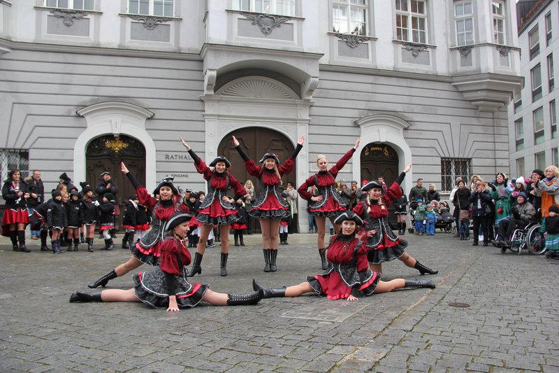Für närrisches Treiben und gute Unterhaltung auf dem Marktplatz sorgten die viel beklatschten Auftritte der Mini-, Kinder-, Teeny- und Prinzengarde des TV Memmingen. Kehrles besonderer Dank galt den anwesenden Narrenzünften der Region, die den Rathaussturm tatkräftig unterstützten.