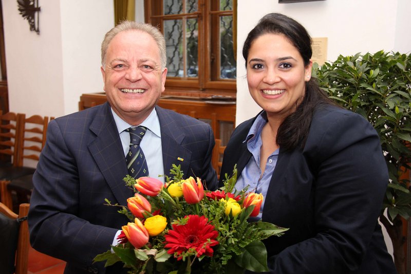 Vorsitzender und Ausländerbeauftragter Commendatore Antonino Tortorici bedankte sich bei Kaynak für die interessanten Ausführungen und überreichte zum Dank einen Blumenstrauß.