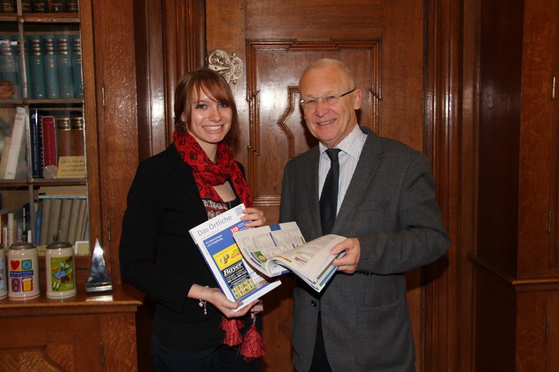 Bianca Uremovic von der Kunze Medien AG freute sich, dem Oberbürgermeister in seinem Amtszimmer eines der ersten Exemplare der Neuauflage von "Das Örtliche für Memmingen und Umgebung" persönlich überreichen zu können.