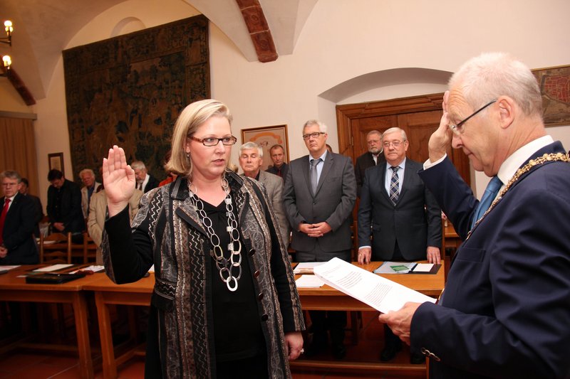 "Ich darf sie herzlichst in unserer Mitte begrüßen", gratulierte Oberbürgermeister Dr. Ivo Holzinger der nachgerückten Stadträtin der Freien Wähler und beherzigte sie, "stets das Gemeinwohl im Auge zu behalten". Danach leistete Flemming den Amtseid.
