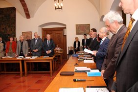 Im Zuge der Vereidigung wurde dem im Alter von 73 Jahren überraschend gestorbenen Ulrich Braun gedacht, dessen ehemaliger Platz im Stadtrat mit Trauerflor umgeben und einem Gesteck geschmückt war.