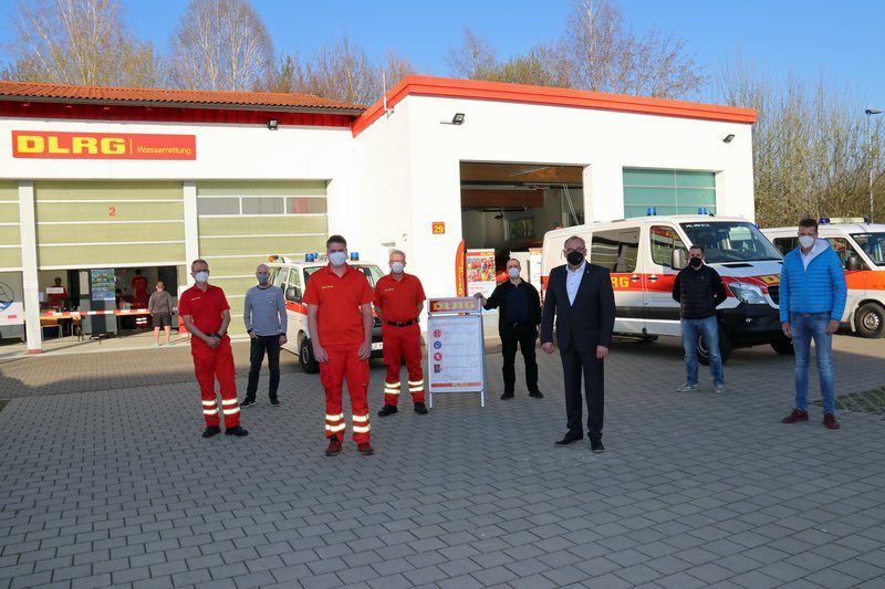 Das Testangebot in Memmingen wird aktuell stetig erweitert. Am Sonntag fanden die ersten Schnelltests im Einsatz- und Ausbildungszentrum der Deutschen Lebens-Rettungs-Gesellschaft (DLRG) Memmingen/Unterallgäu statt. Am ersten Abend haben sich bereits 58 Personen kostenlos auf das Coronavirus testen lassen. „Ich danke den ehrenamtlichen Mitarbeiterinnen und Mitarbeitern der DLRG sehr herzlich für diesen engagierten Einsatz“, betonte Oberbürgermeister Manfred Schilder bei einem Besuch der neuen Teststation in der Mammostraße.