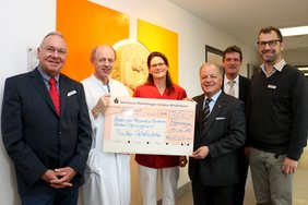 Die dreistellige Spendensumme stammt aus den Essenseinnahmen beim traditionellen Fest der Kulturen, das heuer zum 40. Mal mit internationalen kulinarischen Köstlichkeiten, bunten Folkloretänzen und beschwingter Musik eine sommerliche Stimmung auf den Memminger Westertorplatz zauberte. Die Spende wird in vollem Umfang den schwerstkranken Patienten der Palliativstation des Klinikum Memmingen zu Gute kommen. Wie bereits berichtet, sammeln die Palliativstation und der Förderverein des Klinikum Memmingen Spenden für den Bau eines Außenbalkons, auf den bettlägerige Patienten im Krankenbett geschoben werden können. Der Balkon soll es Sterbenskranken ermöglichen, noch einmal die Sonne auf der Haut zu spüren und die frische Luft einzuatmen. Beim Überbringer der Spende, dem Ausländerbeiratsvorsitzenden Commendatore Antonino Tortorici (Dritter von rechts), bedankten sich vom Klinikum Memmingen (von links) Pflegedirektor Hans-Jürgen Stopora, der Ärztliche Klinikdirektor und Leiter der Palliativstation, Chefarzt Professor Dr. Albrecht Pfeiffer, Fachkrankenschwester Ines Hagner, Klinikverwaltungsleiter Wolfram Firnhaber und Pflegedienstleiter Lutz Freybott.