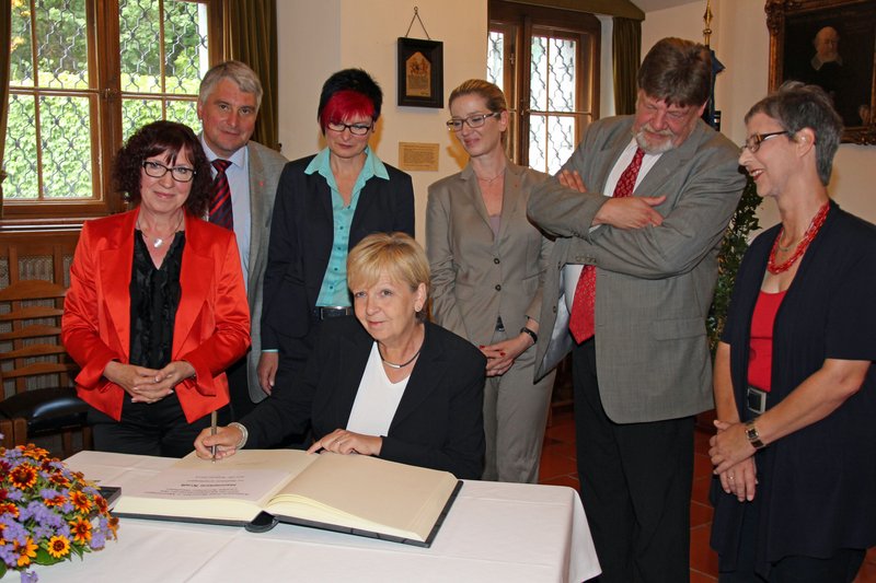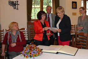 "Es ist uns eine Ehre, Sie bei uns im Rathaus begrüßen zu dürfen", sagte die Bürgermeisterin und informierte die NRW-Ministerpräsidentin über die aktuelle Situation in Memmingen. Dabei ging sie auf die gute Wirtschaftslage, die Investitionen der Stadt in das Bildungswesen, das reiche kulturelle Angebot, die schöne Altstadt und den derzeitigen Umbau der Fußgängerzone ein. Die Ministerpräsidentin dankte für den herzlichen Empfang im Rathaus und trug sich in das Goldene Buch der Stadt ein.