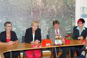 Anschließend stand Hannelore Kraft beim Pressegespräch den zahlreich erschienenen Medienvertretern für Fragen zur Verfügung. Nach dem Empfang im Rathaus stand ein Frauengespräch mit hiesigen Vertreterinnen aus den Bereichen Wirtschaft, Soziales und Kultur sowie ein Besuch am Wahlkampfstand der SPD Memmingen in der Fußgängerzone auf dem Programm.