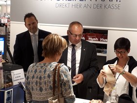 Bei der Aktion "Mama ist die Beste" kassierte Oberbürgermeister Manfred Schilder in der Karstadt-Filiale Memmingen für einen guten Zweck. Zehn Prozent des Umsatzes, den die Kunden in dieser Zeit in der Filiale ließen, wurden von Karstadt an das Frauenhaus Memmingen gespendet.