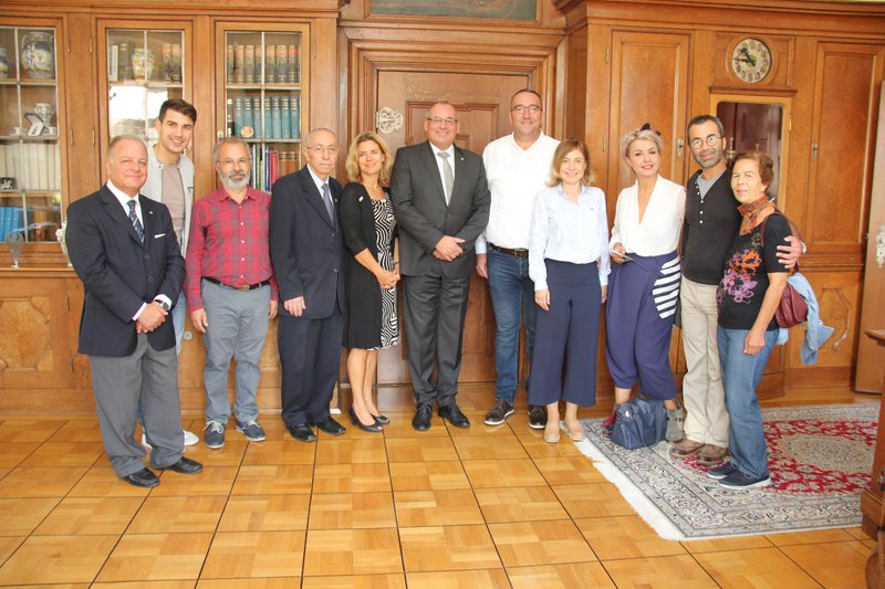 Mustafa Altintas, Bürgermeister von Ahmetbey, dankt Oberbürgermeister Manfred Schilder für den herzlichen Empfang im Rathaus. „Wir sind von dieser wunderschönen Stadt begeistert". Er erzählt, dass er mit 33 Jahren der jüngste Bürgermeister in der Türkei ist und noch viele Projekte umsetzen möchte. So erhielt Ahmetbey vor kurzem erst die Auszeichnung „Kinderfreundlichste Gemeinde".
