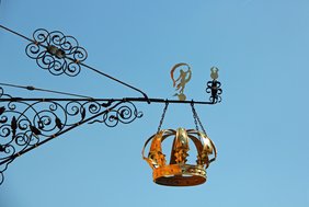Der Gasthof habe im 19. Jahrhundert sein bis zum Abbruch bestehendes Erscheinungsbild bekommen, auf das der Bauherr beim Neubau konsequent Bezug genommen habe. "Unterteilte Fenster mit aufwändigen Jalousieläden unterstreichen in Verbindung mit dem ansprechenden Rot des Mauerwerks die markante Wirkung des einst historischen Gastronomiestandorts, an dessen Geschichte der vorbildlich restaurierte barocke Ausleger mit der goldenen Krone und der Glücksgöttin Fortuna erinnert", sagte Schilder.