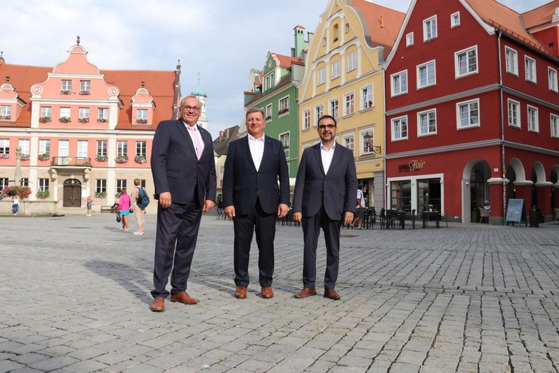 Ein vollgepacktes Programm mit vielen Themen wartete auf Christian Bernreiter, Staatsminister für Wohnen, Bau und Verkehr, bei seinem Besuch in Memmingen. Alle drei Inhalte waren Teil der Agenda des Gastes, der auf Einladung seines Kollegen Staatsminister für Gesundheit und Pflege Klaus Holetschek in die Stadt kam. Mit auf der Tagesordnung beim Besuch: der obligatorische Eintrag ins Goldene Buch.