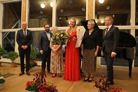Die Laudatio an die Pianistin sprach eine ihrer früheren Professorinnen der Hochschule für Musik, Theater und Medien in Hannover, Darlén Bakke. Sie schätze die junge Musikerin als exzellente Pianistin, die den Charakter von Stücken sehr schnell erfasse, die immer wieder neugierig auf unbekannte Stücke, Komponistinnen oder Aufführungsformate sei und mit ihrer starken Bühnenpräsenz das Publikum erreiche. „Zusätzlich dazu hat sie in verschiedenen Projekten dafür gesorgt, dass vor allem junge Menschen an klassische Musik herangeführt werden oder dass die Ausbildung junger Musikerinnen und Musiker weiter vorangetrieben wird, unter anderem mit ihrem Projekt Klangperspektiven Allgäu.“ Darlén Bakke zog für ihre Laudatio an die 33-Jährige ein Bild Paul Klees heran: „Hat Kopf, Hand, Fuß und Herz“. Und genau das sei es eben auch, was das Spiel und die Musik von Julia Rinderle ausmache. „Und deine Persönlichkeit strahlt die gleiche Wärme aus wie deine Musik!“, würdigte die Professorin ihre ehemalige Studentin.