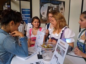 Für die Teilnahme an der „Internationalen Übungsfirmenmesse“ in der pulsierenden Messestadt Mailand mit rund 50 Messeständen aus Deutschland, Österreich und Italien mussten die vier Wirtschaftsschülerinnen einen mehrsprachigen Messekatalog erstellen, Dekorationen für ihren Messestand entwerfen, Visitenkarten und Namensschilder basteln, ein extravagantes Messeoutfit wählen und fiktive Verkaufsverhandlungen auf Englisch führen. Dabei überzeugte das vierköpfige Memminger Messeteam die Jury in Mailand in der Kategorie „Standgestaltung, Auftreten, Originalität und Beratungsqualität“ mit dem schönsten Messestand, freundlichsten Auftreten und der überzeugendsten Vermarktung.
