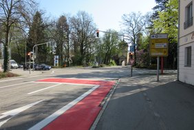 Gefährlichen Situationen bei links abbiegendem Radverkehr und gleichzeitig geradeaus fahrendem Kfz-Verkehr könne man mithilfe dieser Regelung entgegenwirken. Radler in Richtung Königsgraben hätten künftig zudem den Vorteil, direkt links abbiegen zu können, ohne an einer zweiten Ampel warten zu müssen.