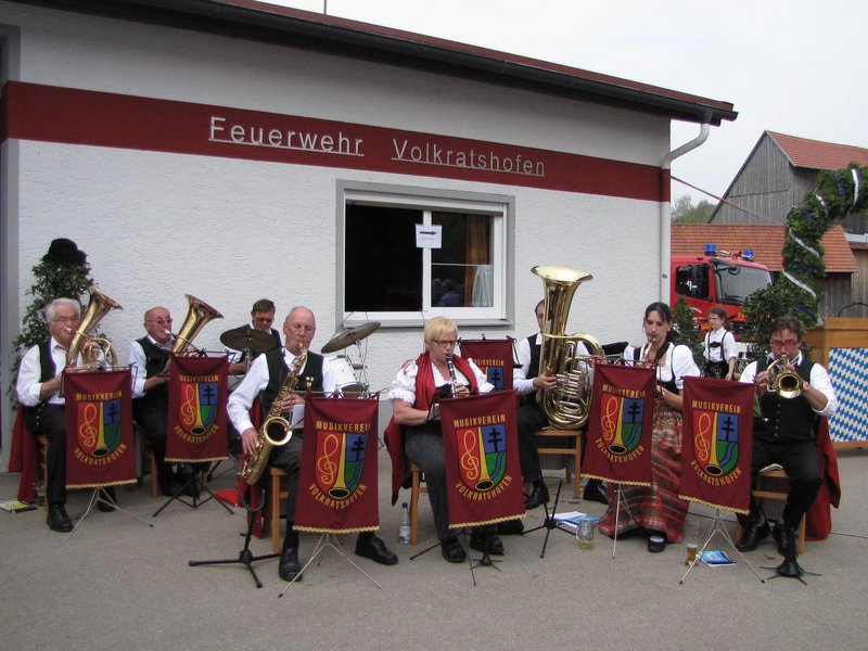 Günther Hieber, Vorsitzender der Freiwilligen Feuerwehr Volkratshofen, begrüßte die Ehrengäste und wünschte ihnen viel Vergnügen auf dem Maibaumfest der Feuerwehr, der Evangelischen Landjugend und des Bürgerausschusses. Passend zum Motto des Tages könne man am Stand des "Radl-Stadl" Elektroräder testen. Für Kinder seien die Spaßräder des Sportvereins eine besondere Attraktion.