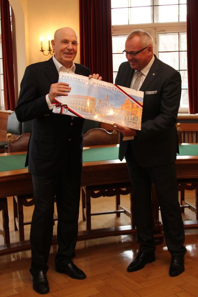 Oberbürgermeister Manfred Schilder empfing Prof. Dr. Hans-Peter Sonnenborn, Governor des Rotary-Destrikts 1841, im Rathaus. Sonnenborn besuchte gemeinsam mit seinen Vorgängern Memmingen im Rahmen seines Antrittsbesuchs bei den Rotary Clubs Memmingen und Memmingen Allgäuer Tor.