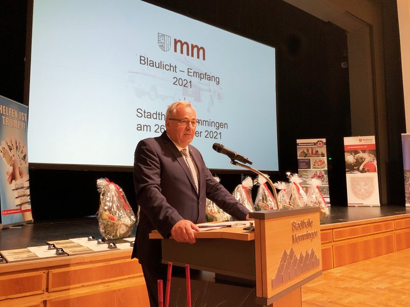 Zu den Ehrengästen des Blaulichtempfangs zählten neben den Vertreterinnen und Vertretern der Feuerwehren, der Polizei, des THW und der freiwilligen Hilfsorganisationen auch Staatsminister für Gesundheit und Pflege und Stadtrat Klaus Holetschek, Ehrenbürger und Bürgermeister, Feuerwehrreferent Jürgen Kolb und Vertreter der Stadtratsfraktionen. Musikalisch umrahmt wurde der Empfang von Anette Weber am Akkordeon und Constanze Kraus an der Harfe.