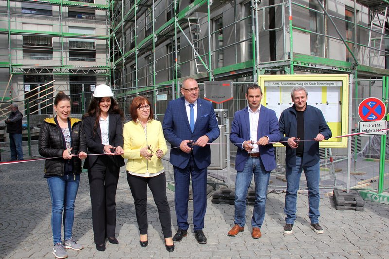 Durch den L-förmigen Grundriss gelte es insgesamt sechs Fassadenseiten instand zu setzen und mit einem modernen Oberflächenschutz zu versehen, erläuterte Architektin Bernadette Dietrich von ku_architekten (Memmingen) die anstehenden Arbeiten. Rund 140 Fenster werden ausgetauscht. Es soll immer an zwei gegenüberliegenden Fassadenseiten gleichzeitig gearbeitet werden. Nach dem Gerüstaufbau wird die Fassade mit Hochdruck-Wasser abgestrahlt und gereinigt. Schadhafte Teile der Betonplatten werden abgeklopft und erneuert. Die Bauarbeiten sollen im Herbst beendet sein.