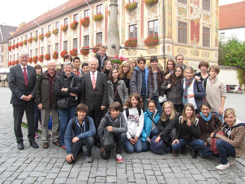 Oberbürgermeister Dr. Holzinger sieht in dem Schüleraustausch „einen aktiven Beitrag zur deutsch-französischen Freundschaft". Er erinnert in diesem Zusammenhang auch an unsere französische Partnerstadt Auch im Departement Gers.