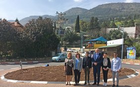 Voller Stolz und Freude präsentierte Bürgermeister Avichai Stern den Besuchern aus Memmingen eine ganz besondere Überraschung: Zu Ehren der Partnerstadt wird der sich gerade im Bau befindliche Kreisverkehr an der Hauptverkehrsstraße direkt vor dem Rathaus den Namen „Memmingen“ bekommen. Er soll mit dem Namen der Partnerstadt und dem Stadtwappen versehen werden. Als perfekte Motivvorlage für das Stadtwappen überreichte Oberbürgermeister Manfred Schilder seinem israelischen Amtskollegen den Stadtwappen-Pin direkt von seinem Sakko-Revers.