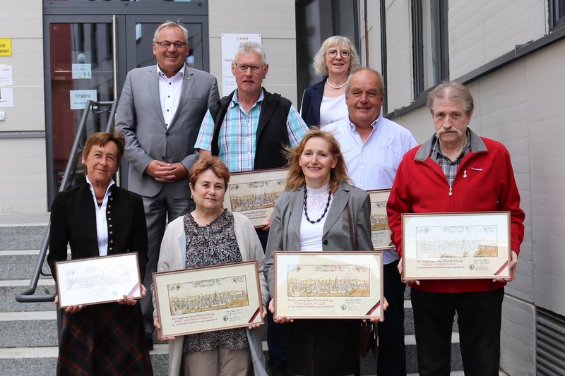 Oberbürgermeister Manfred Schilder wünschte sechs Mitarbeiterinnen und Mitarbeitern aus den verschiedensten Bereichen der Stadtverwaltung einen angenehmen und erholsamen Ruhestand bei bester Gesundheit. Dabei bedankte er sich im Namen der Stadt außerdem für ihren ausdauernden Einsatz: „Nach dem jahrelangen Einhalten von Dienstplänen und Vereinbarungen sind sie nun frei und können tun und lassen, was Sie wollen. Genießen Sie es! Sie haben es sich verdient“, fand Manfred Schilder bei der kleinen Feier im Rathaus.