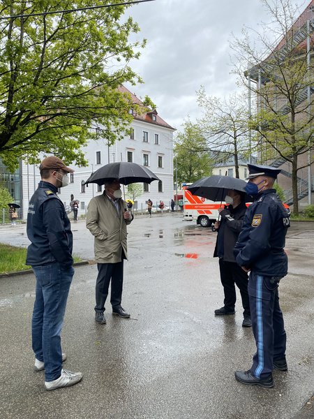 Die Sonder-Impfaktion im Impfzentrum Memmingen ist in vollem Gange. Oberbürgermeister Manfred Schilder machte sich vor Ort mit Andreas Land (Leiter Amt für Brand- und Katastrophenschutz), Jochen Glaser (Erster Polizeihauptkommissar) und Raphael Niggl (Stadtbrandrat) ein Bild vom Ablauf der Aktion. „Ohne die hohe Motivation und den Elan aller Beteiligten aus den verschiedenen Ämtern, der Polizei, des Sicherheitsdienstes und vieler ehrenamtlicher Helferinnen und Helfer, hätten wir diese Aktion nicht durchführen können“ lobte Schilder. „Dafür danke ich allen sehr.“