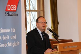 Der Vorsitzende des DGB-Kreises Allgäu, Ludwin Debong, nannte die Zunahme prekärer Leiharbeitsverhältnisse als gravierendes Problem auch in unserer Region. Die Zahl der Leiharbeitsfirmen in Memmingen sei sehr hoch, erklärte Debong. Eine dringende Bitte richtete er an die Verantwortlichen für den Wohnungsbau in Memmingen, mehr bezahlbaren Wohnraum in der Stadt zu schaffen. „Überlegen Sie bitte, ob hier nicht noch etwas mehr getan werden kann“, appellierte Debong. Oberbürgermeister Schilder kündigte an, dass dieses Thema Ende Januar bei einem Wohnraumgipfel im Rathaus mit den Wohnungsbaugenossenschaften erörtert werde.