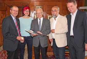 Die Asylpolitik war eines der Themen in einem Informationsgespräch zwischen Oberbürgermeister Dr. Ivo Holzinger und den Mitgliedern der SPD-Bezirkstagsfraktion im Rathaus. Bezirksrätin Petra Beer, SPD-Fraktionsvorsitzender Wolfgang Bähner (Augsburg), Dr. Gerhard Ecker, Oberbürgermeister von Lindau, und Behindertenbeauftragter Volkmar Thumser (Augsburg) tauschten sich bei einem Empfang im Amtszimmer mit dem Oberbürgermeister über dringende politische Fragen aus.