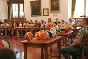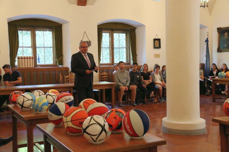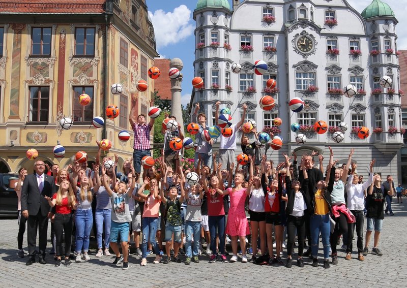 Oberbürgermeister Manfred Schilder hat die schulbesten Sportlerinnen und Sportler der Memminger Schulen bei den Bundesjugendspielen im Rathaus empfangen. Er gratulierte den Mädchen und Buben zu ihren hervorragenden Leistungen und ihrem vorbildlichen Sportsgeist und überreichte ihnen als Auszeichnung neue Sportbälle.