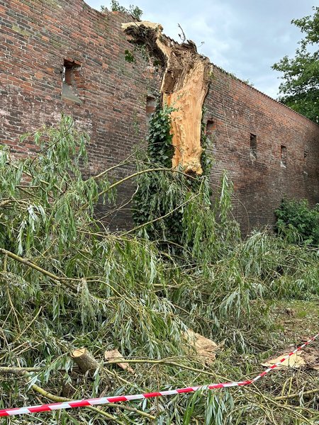Das Sturmtief „Ronson“ hat am späten Dienstagabend (11.7.) in Memmingen deutliche Spuren hinterlassen. Viele Bäume sind abgebrochen oder stürzten auf Straßen, Fahrzeuge und Stromleitungen. Verletzt wurde glücklicherweise niemand. „Der Sturm war kurz, aber sehr heftig. Allen Einsatzkräften möchte ich für ihre kräftezehrende Arbeit sehr herzlich danken“, betont Oberbürgermeister Jan Rothenbacher. Die Aufräumarbeiten dauern nach wie vor an.