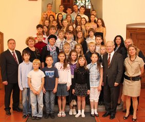 Oberbürgermeister Dr. Holzinger empfängt die Gäste aus der Partnerstadt im Rathaus und freut sich, daß dieser Austausch die Beziehungen zwischen den beiden Städten nachhaltig mit Leben füllt und ein weiteres Fundament der Freundschaft darstellt.