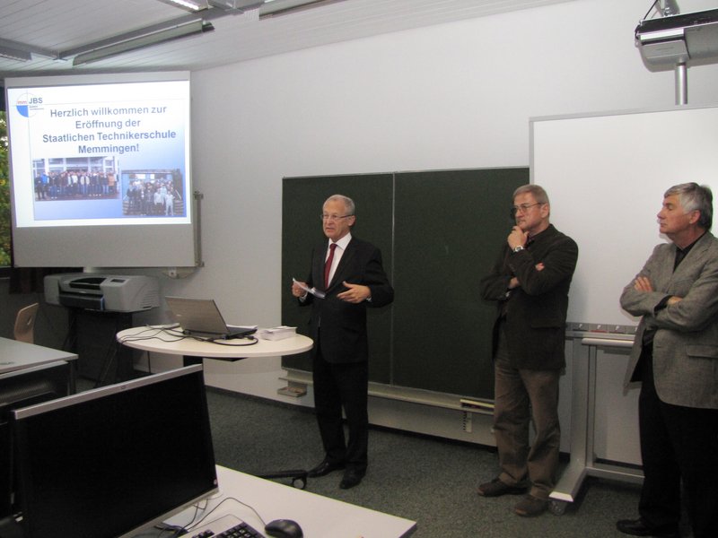 Wie Gneiser erzählte, erfuhr er früh von der beabsichtigten Neugründung von Fachschulen im Freistaat und so gelang ihm, diese Schulform nach Memmingen zu holen. „Mein Dank gilt der Stadt für die Unterstützung und auch die nötigen Investitionen“, so Gneiser. Software und Technik seien teuer, aber zwingend erforderlich für eine praxisnahe und hochwertige Ausbildung. Eine umfangreiche Präsentation Stadlers verdeutlichte Lehrinhalte und zeigte beispielhaft, zu welch anspruchsvollen Programmierungen seine Schüler schon nach Kurze fähig sind. Mit den zwei Profilen Produktions- und Fertigungstechnik sowie Entwicklung und Konstruktion /Mechtatronik haben die Lernenden zudem die Möglichkeit, sich zu spezialisieren. Wahlfächer bieten zudem weitere Freiräume für eine individuelle Ausbildung.